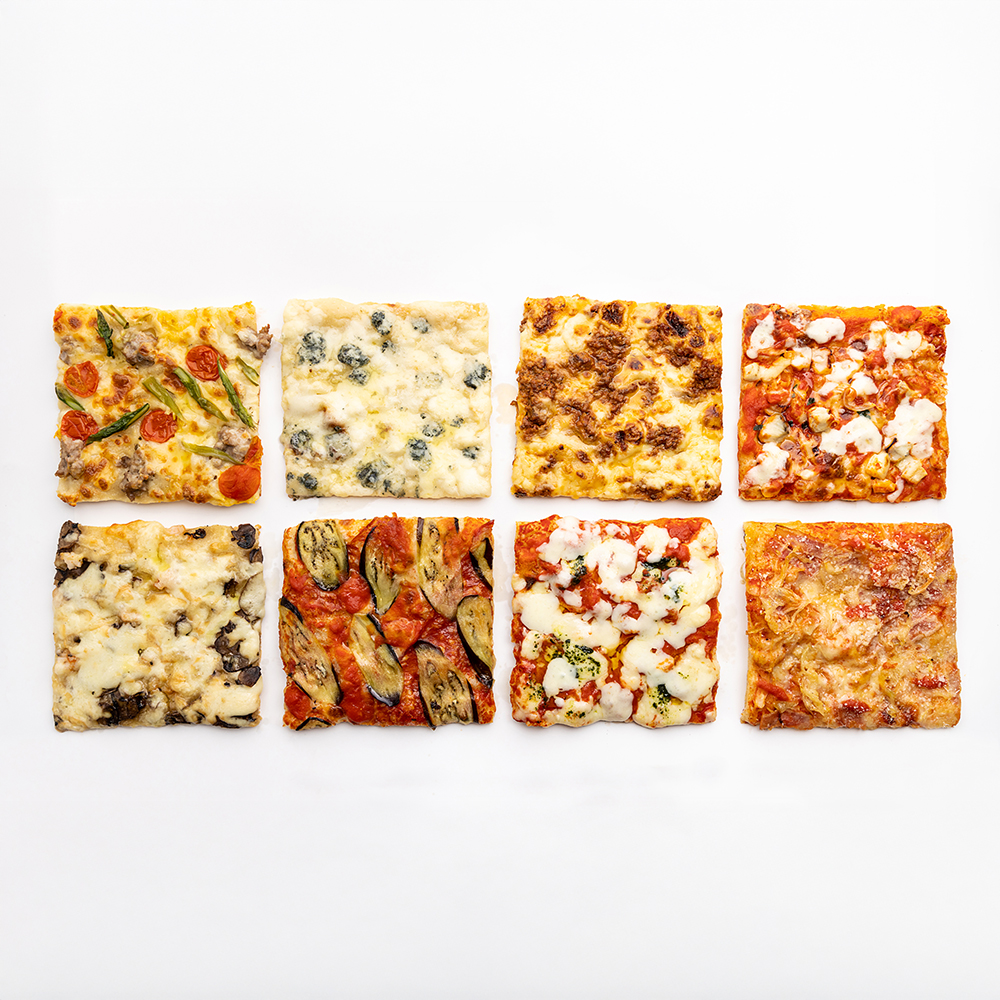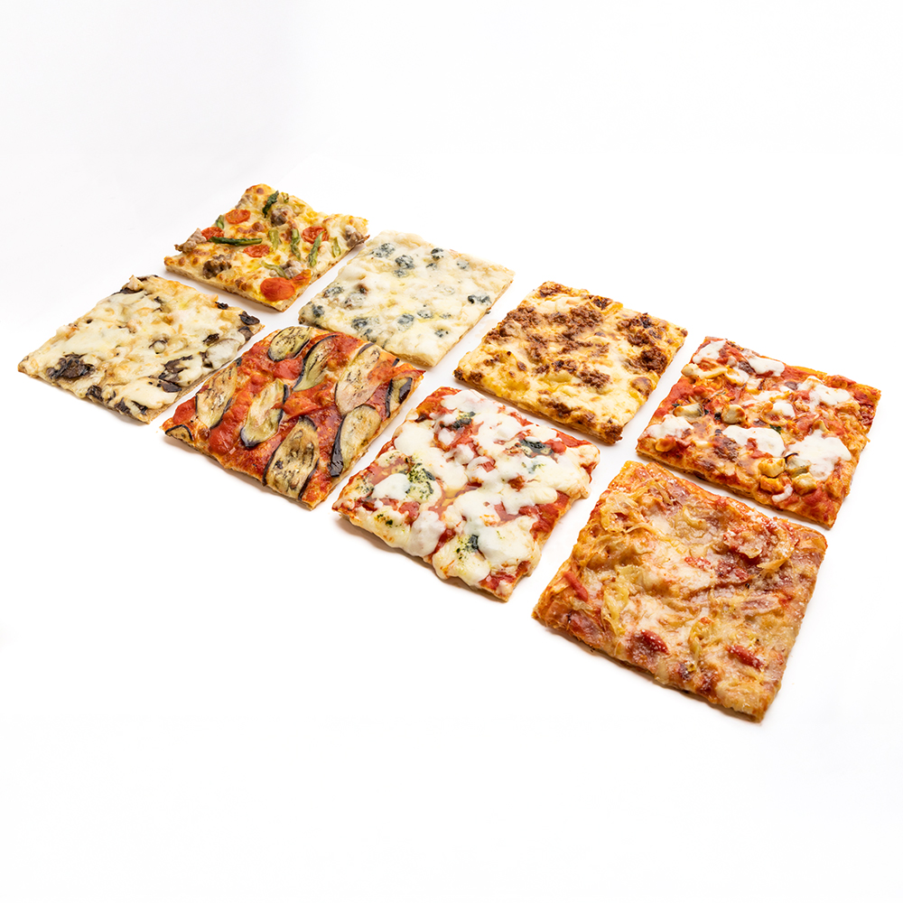 本場ローマの四角い切り売りピッツァを食べやすい大きさにカットして瞬間冷凍しています。
