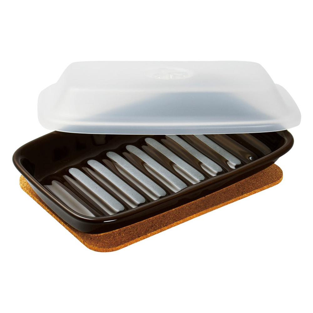 プレート(15.5×24×3.5cm)・フタ・マット×各1・磁器、PP、コルク
