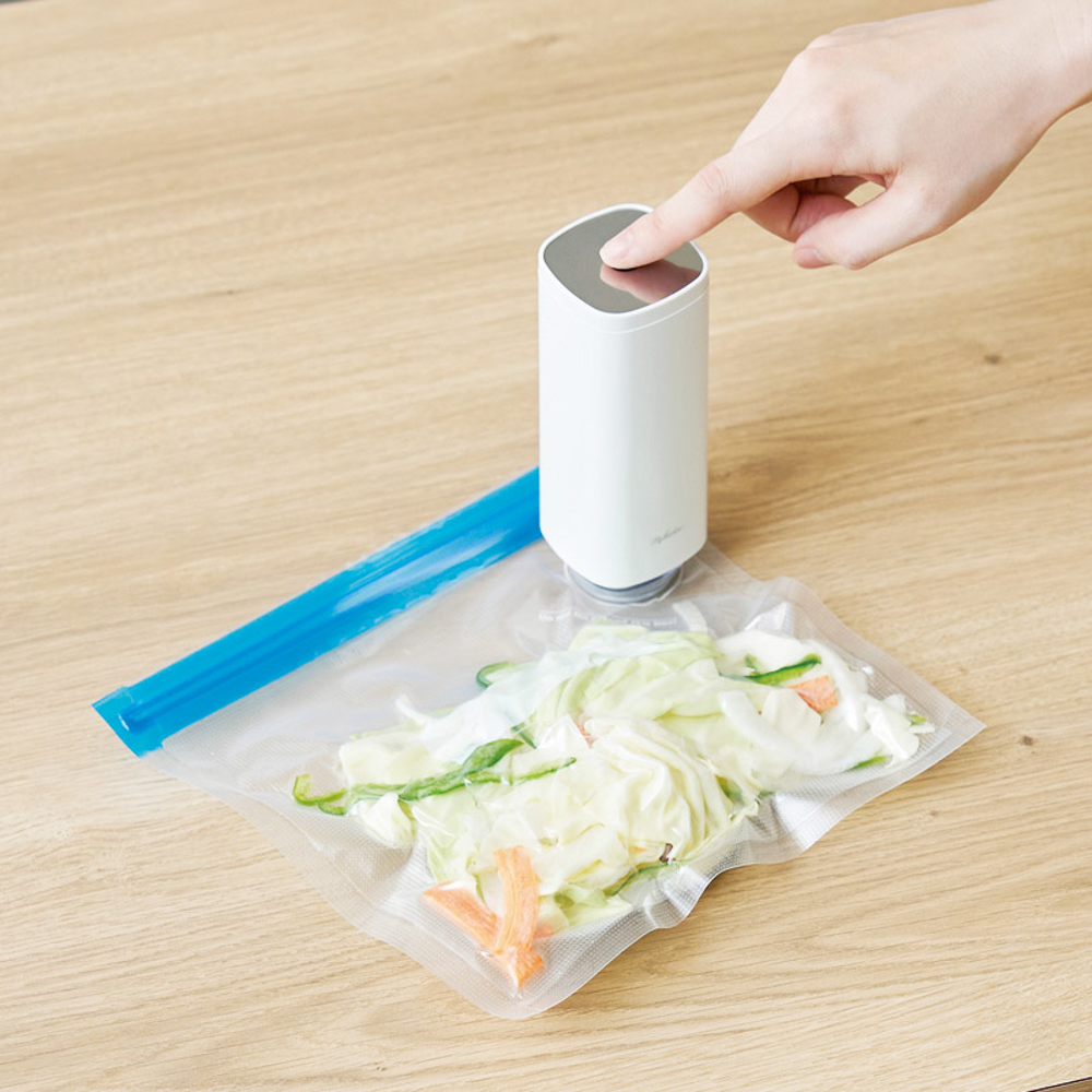 専用の保存袋を使用することで、冷蔵庫内・冷凍庫内の体積を減らし、整理整頓が可能。
