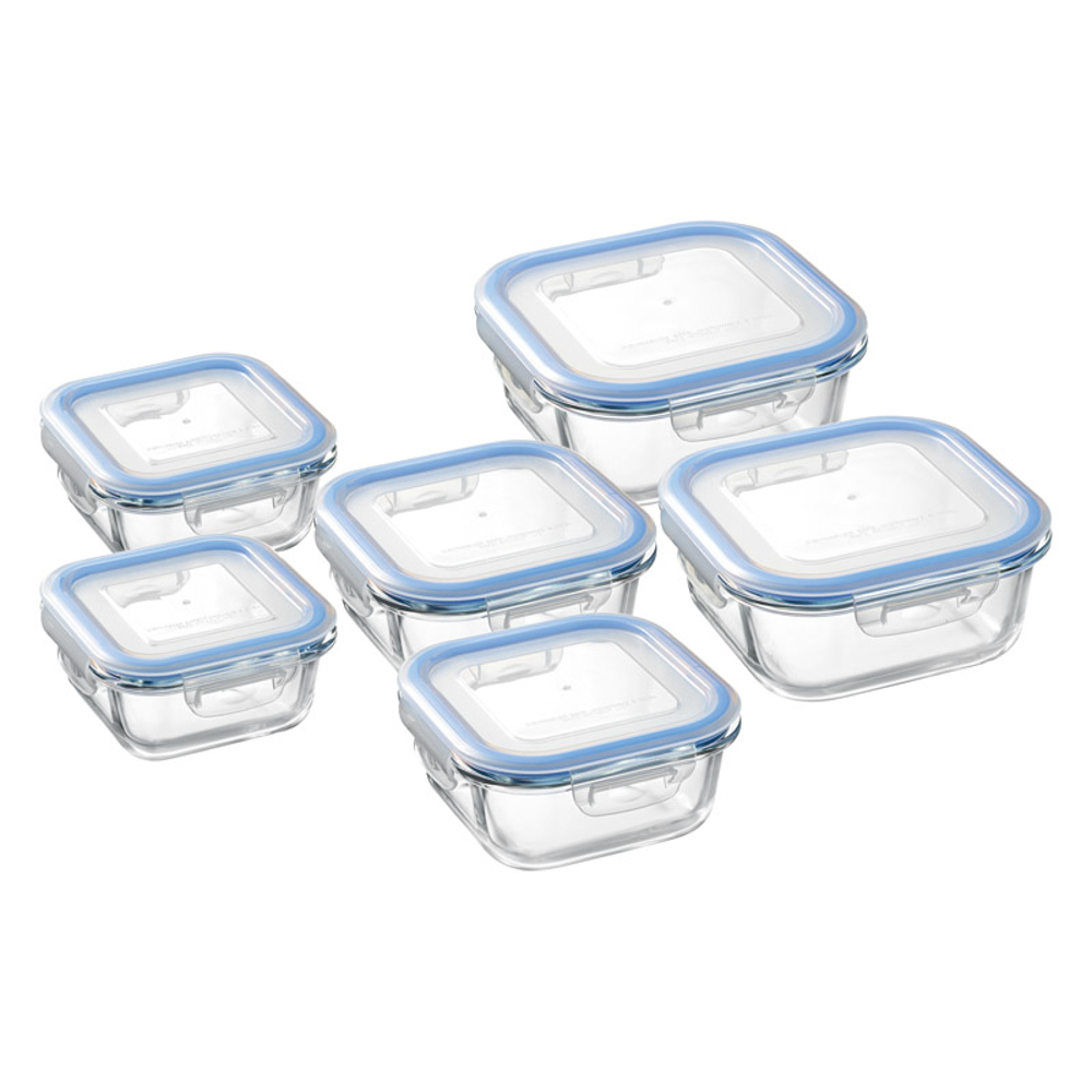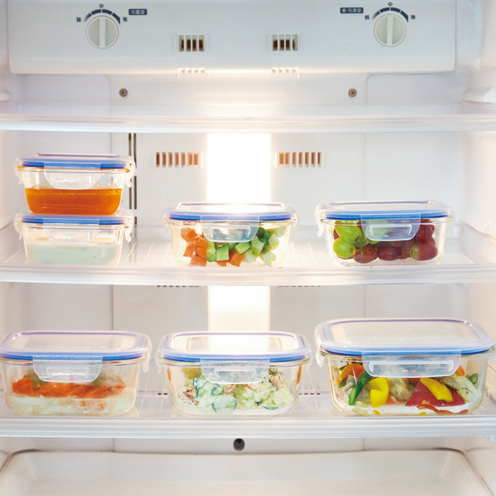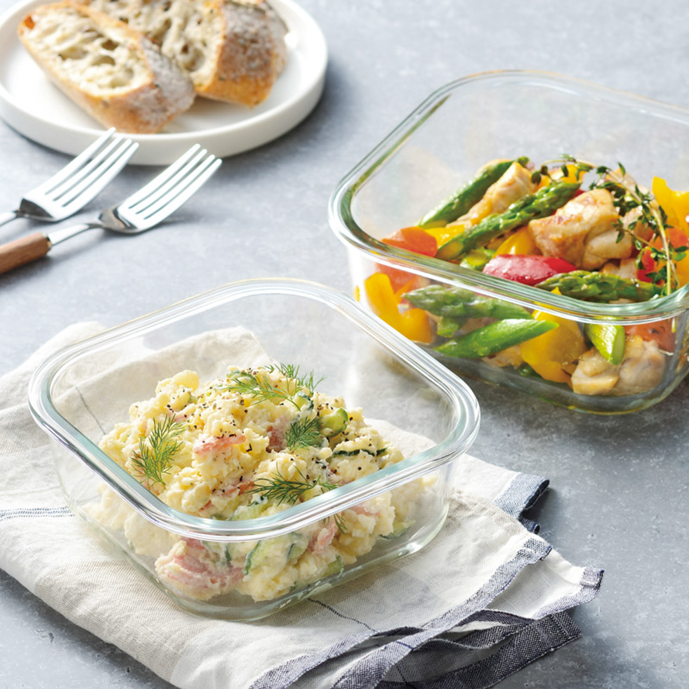 | 内容量 | 300ml(11.6×11.6×5.8cm)・510ml(13.8×13.8×6.5cm)・800ml(15.8×15.8×7cm)×各2・本体:耐熱ガラス、蓋:ポリプロピレン、パッキン:シリコーンゴム |