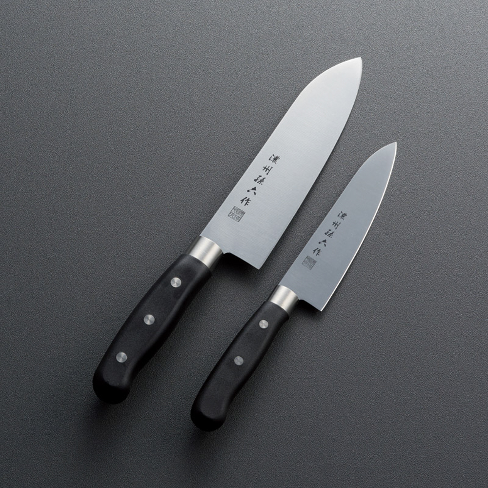三徳包丁(刃渡17cm)・ぺティナイフ(刃渡12cm)×各1・モリブデンステンレス刃物鋼、柄:ポリプロピレン