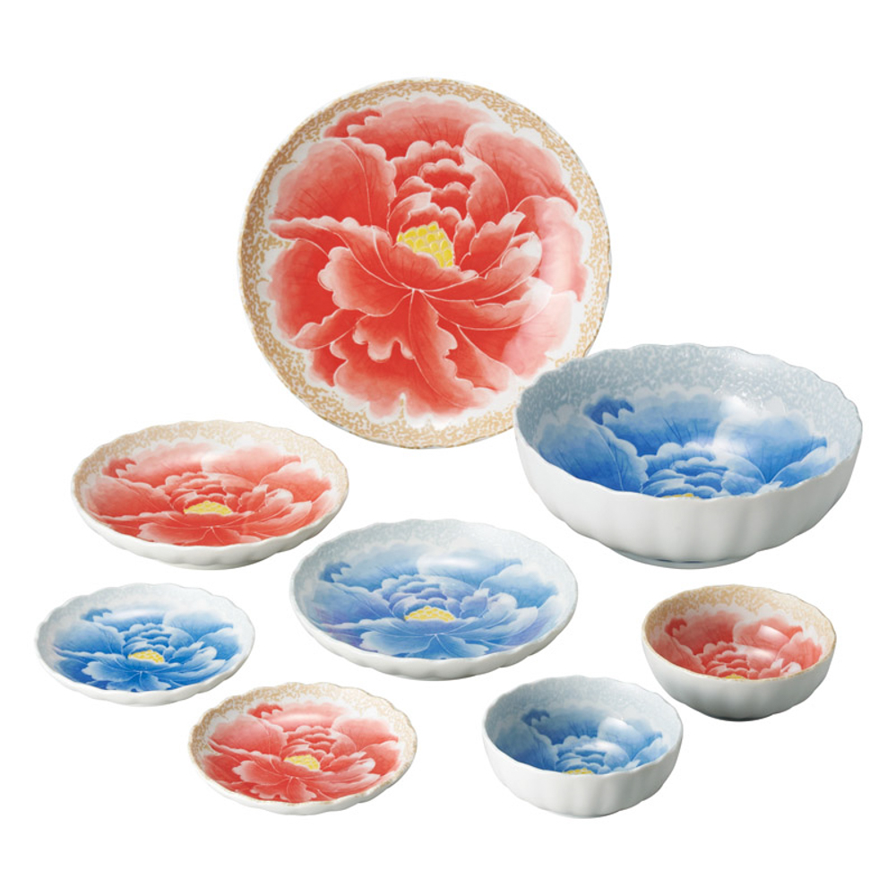 3.5鉢(径10.5×4.2cm)・3.5皿(径12.2×2.7cm)・5.0皿(径16.3×3.5cm)×各2、8.0皿(径23×4cm)・6.8鉢(径20.6×7.4cm)×各1・磁器