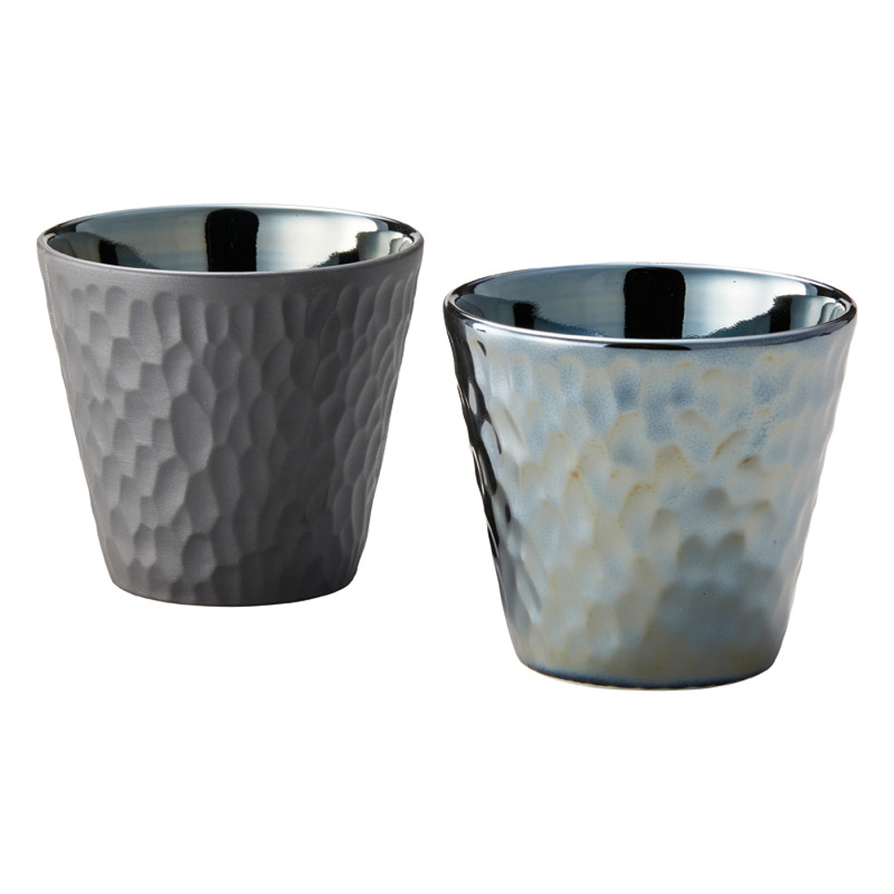 鎌倉彫りを思わせるような陰影のある削ぎ模様が美しいロックカップ。内側をラスター加工で光沢を施した魅力的な仕上がりとなりました。焼酎ロック等、氷と飲料を注げば、また違った表情を覗かせます。家庭用食洗機使用可。