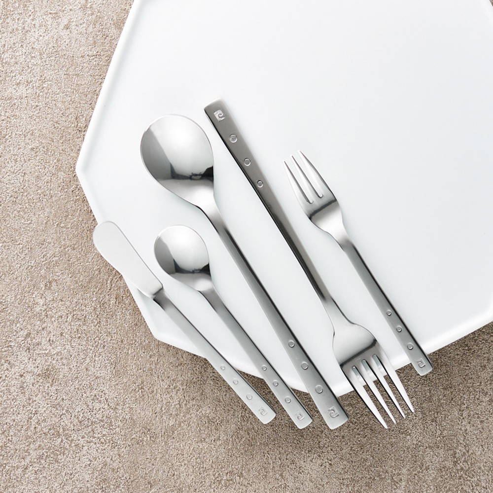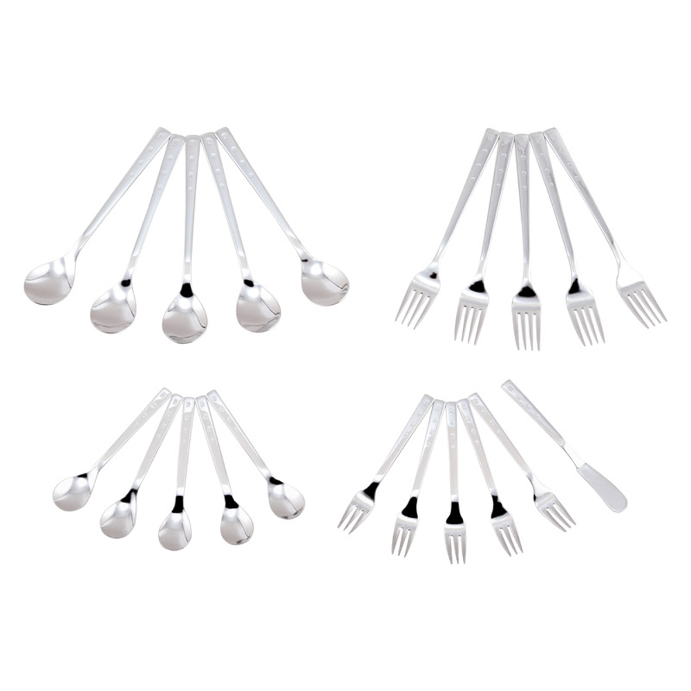 ⚫︎内容量/コーヒースプーン全長11.8cm ヒメフォーク全長12.4㎝ バターナイフ全長12.8cm デザートスプーン全長17.3㎝ デザートフォーク全長18.1㎝・コーヒースプーン・ヒメフォーク・デザートスプーン・デザートフォーク×各5、バターナイフ×1・ステンレス⚫︎お届け日/指定不可⚫︎配送方法/常温⚫︎原産地・加工地/日本製