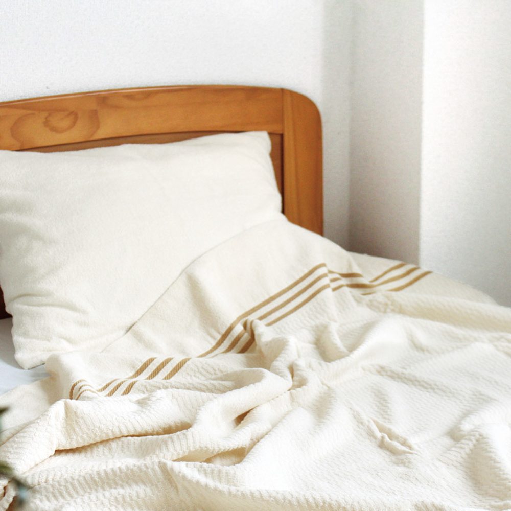 自然のままのコットンの色合いを生かして、無染色で織り上げた国産のタオルケットです。