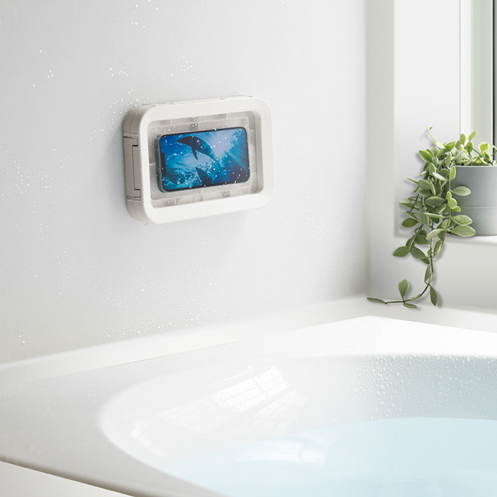 おふろなど水回りで映画や音楽などをスマートフォンで満喫できるマグネット・スタンド付きのスマートフォン専用防水ケースです。