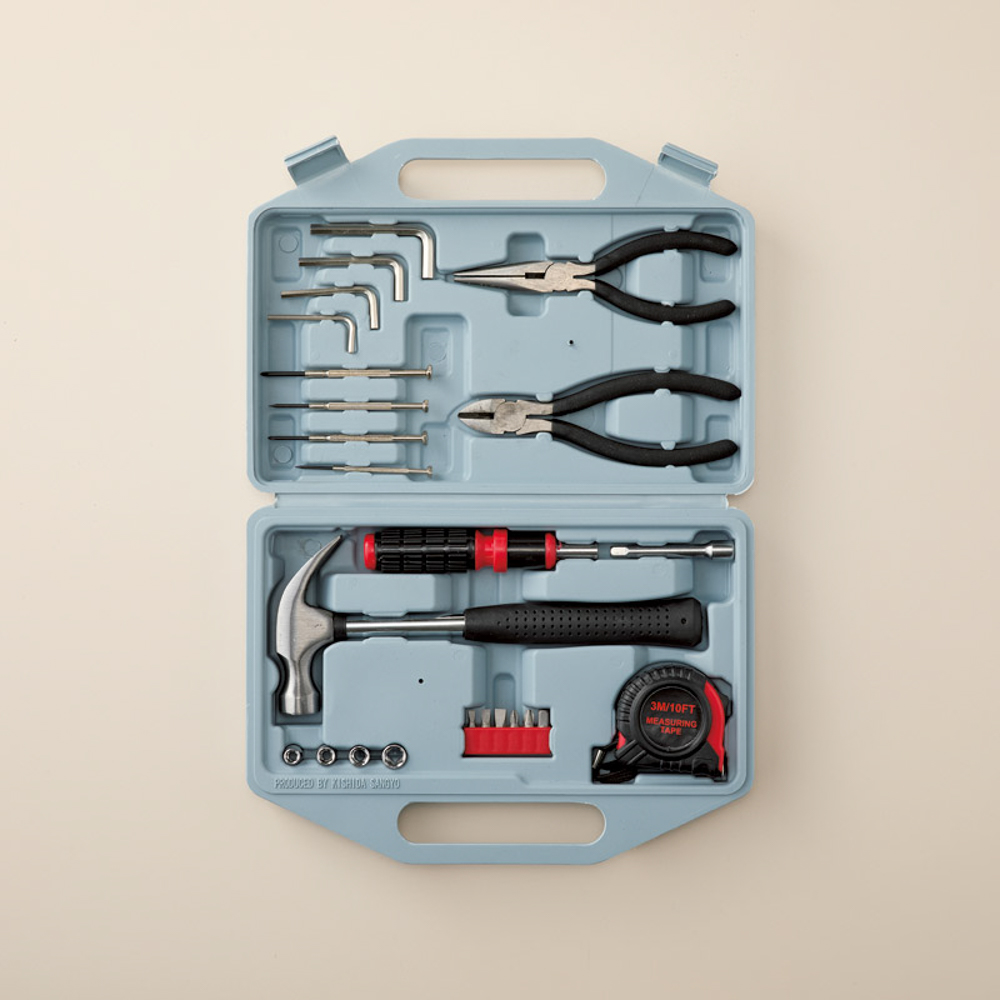| 内容量 | 29×20.5×5.5cm・ビットドライバー×1、エクステンションバー×1、ソケット×4、ビット×5、ビットアダプター×1、精密ドライバー×4、六角レンチ×4、ハンマー×1、メジャー(3mストッパ付き)×1、ラジオペンチ×1、ニッパー×1・ポリプロピレン、ポリ塩化ビニル、カーボンスチール、クロムバナジウム、ABS、TPR、高密度ポリエチレン |