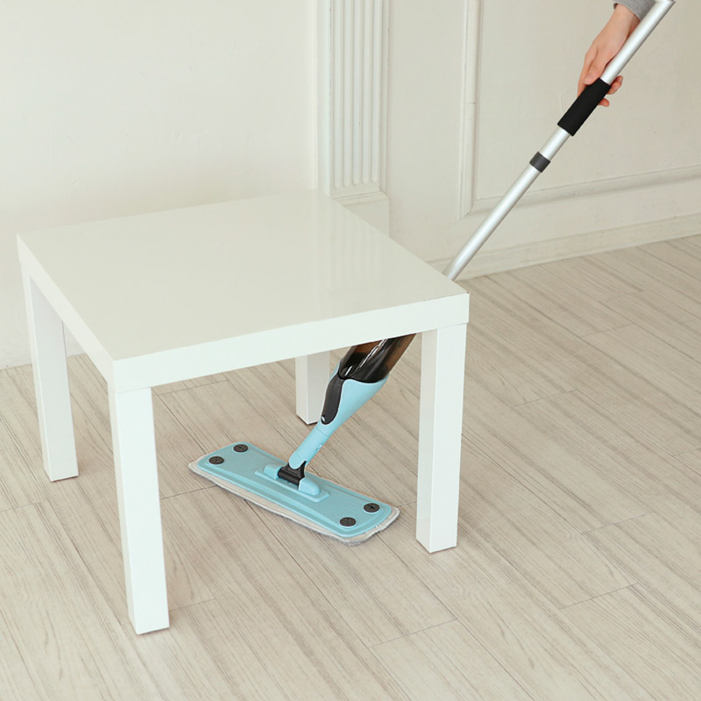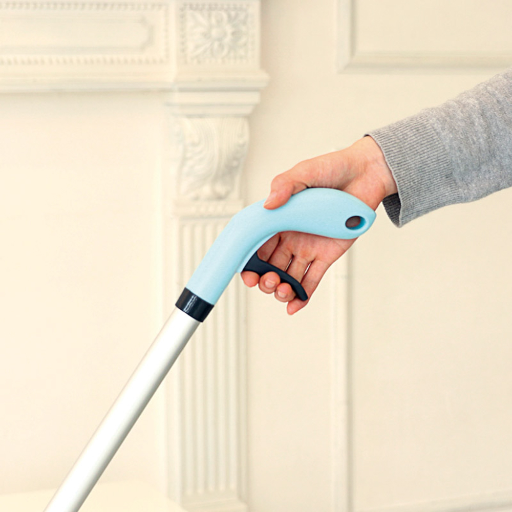 手元のレバーを握るだけで水を噴射するので、手を汚さずに立ったまま簡単に水拭きができます。