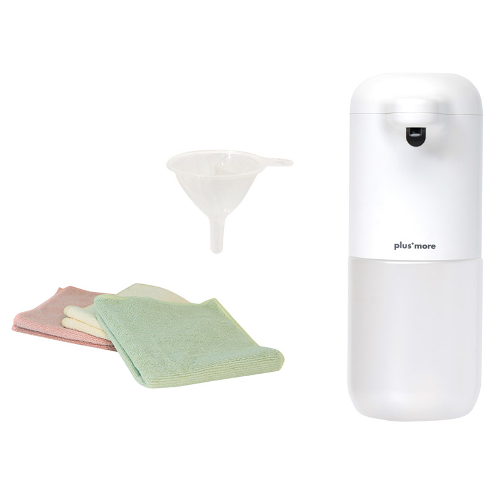 | 内容量 | 7.5×11×19cm(320ml)・本体(7.5×11×19cm・320ml)・漏斗×各1、マイクロファイバーマルチクロス(30×30cm)×3・オートディスペンサー:ABS樹脂・PET樹脂・シリコーン、マイクロファイバークロス:ナイロン・ポリエステル |