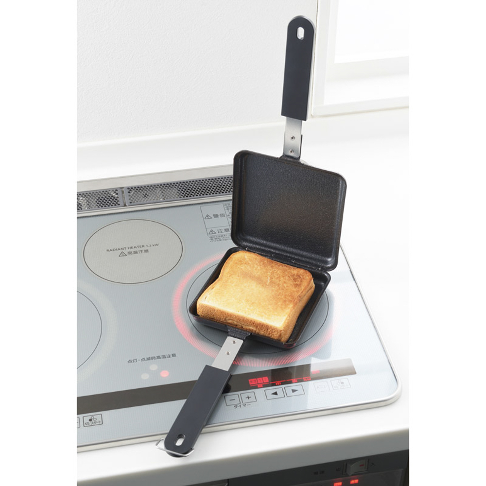 お手軽朝ごはんも本格キャンプ飯も楽しく作れる、IH・ガス火対応のホットサンドメーカーです。
