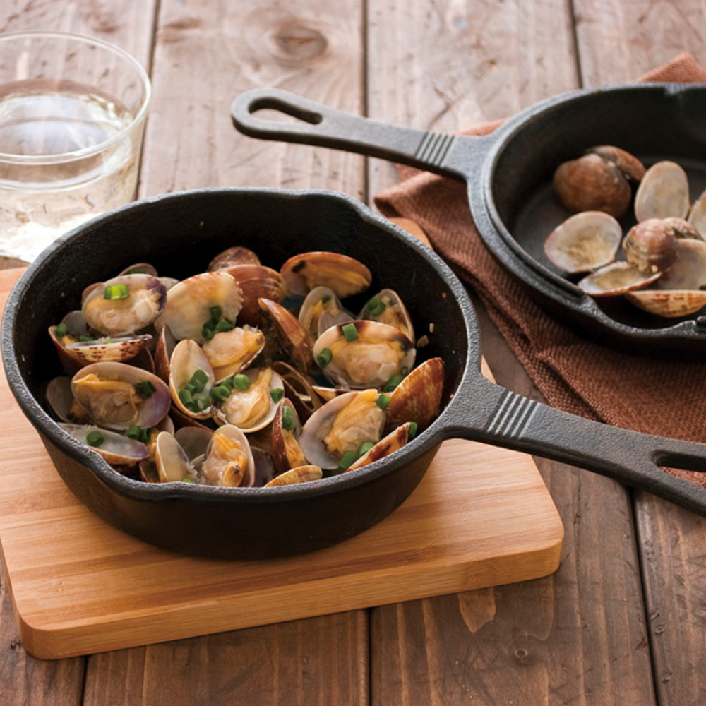 深型(25.8×16.8×4.5cm)・浅型(25.5×16.7×3.3cm)・アミ・敷板×各1・鉄(表面:油焼き)、天然木