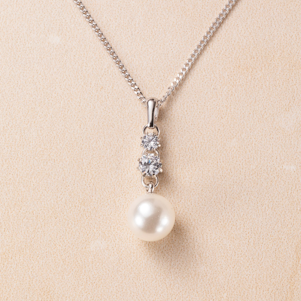 全長約40cm、トップ:約2.6×0.8cm・真鍮(シルバーカラーメッキ)、貝パール(径約8mm)、キュービックジルコニア