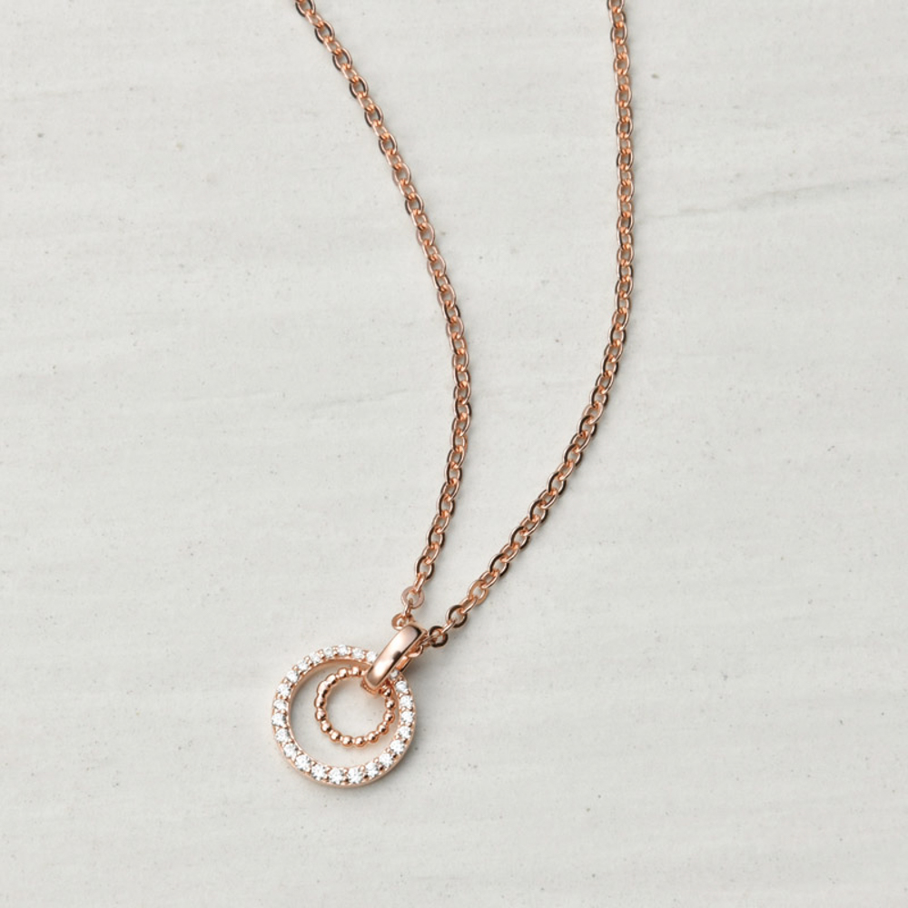 全長約40cm、トップ:約1.3×1cm・シルバー925(ピンクゴールドメッキ)、キュービックジルコニア25石、真鍮(ピンクゴールド色メッキ)