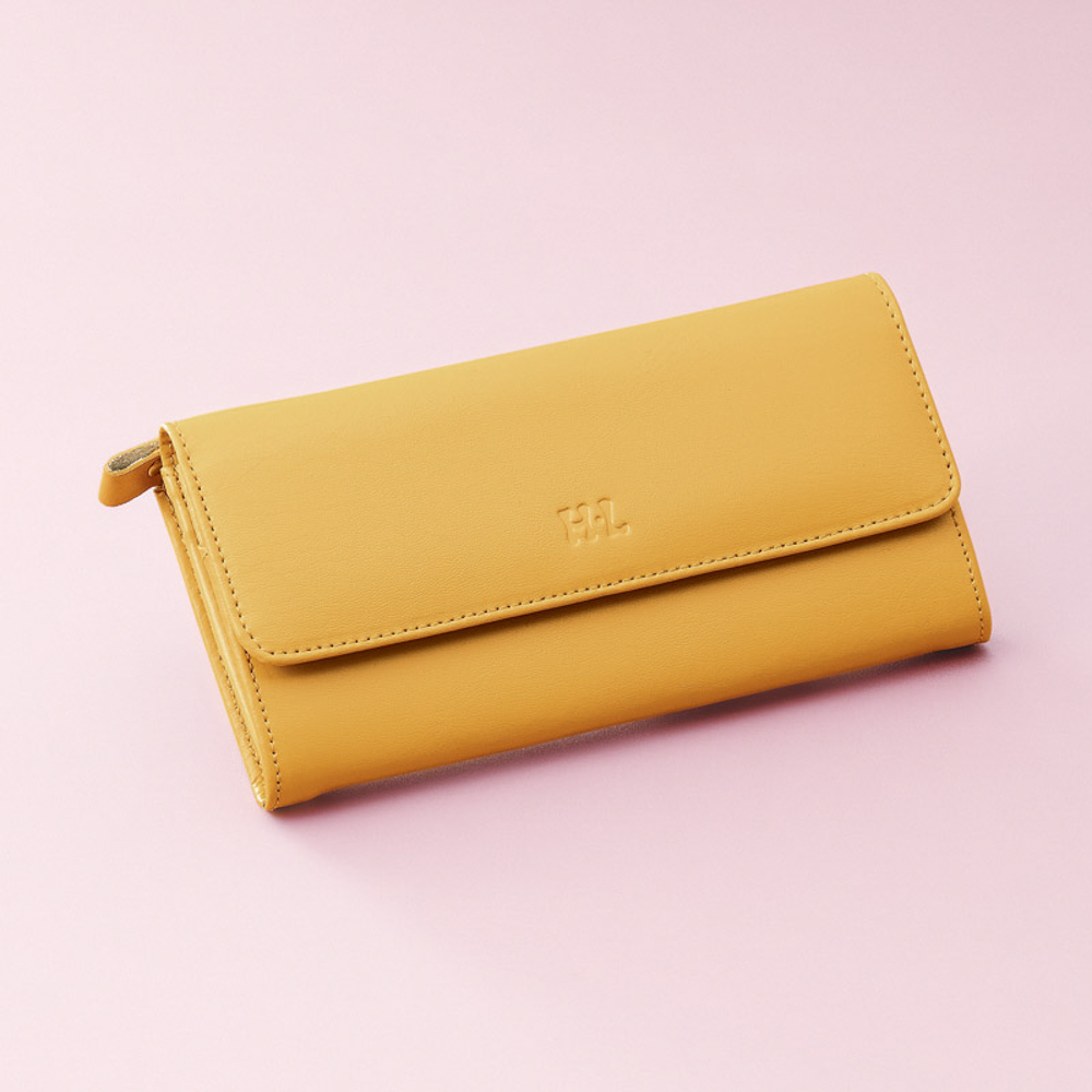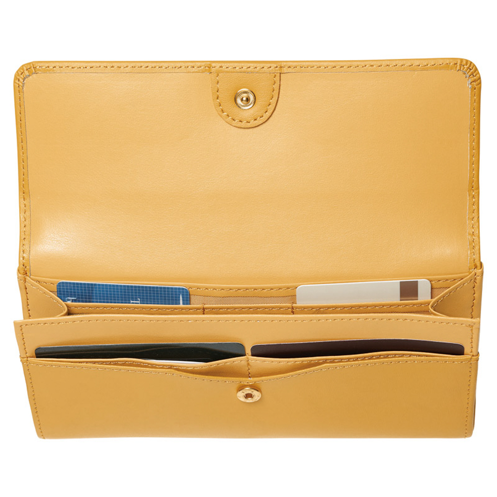 小銭入れ部分が背面に付いていて、出し入れがスムーズ。L字型ファスナーで口も大きく開きます。細かいものの仕分に便利な多彩なポケットも魅力。札入・ファスナー式小銭入(仕切り付)・外ポケット×各1室、カード入×4室、内ポケット×3室。