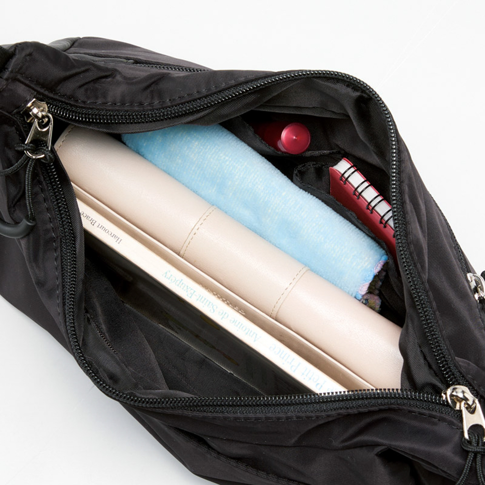 500mlのペットボトルやスマートフォン、財布など余裕で収納。
