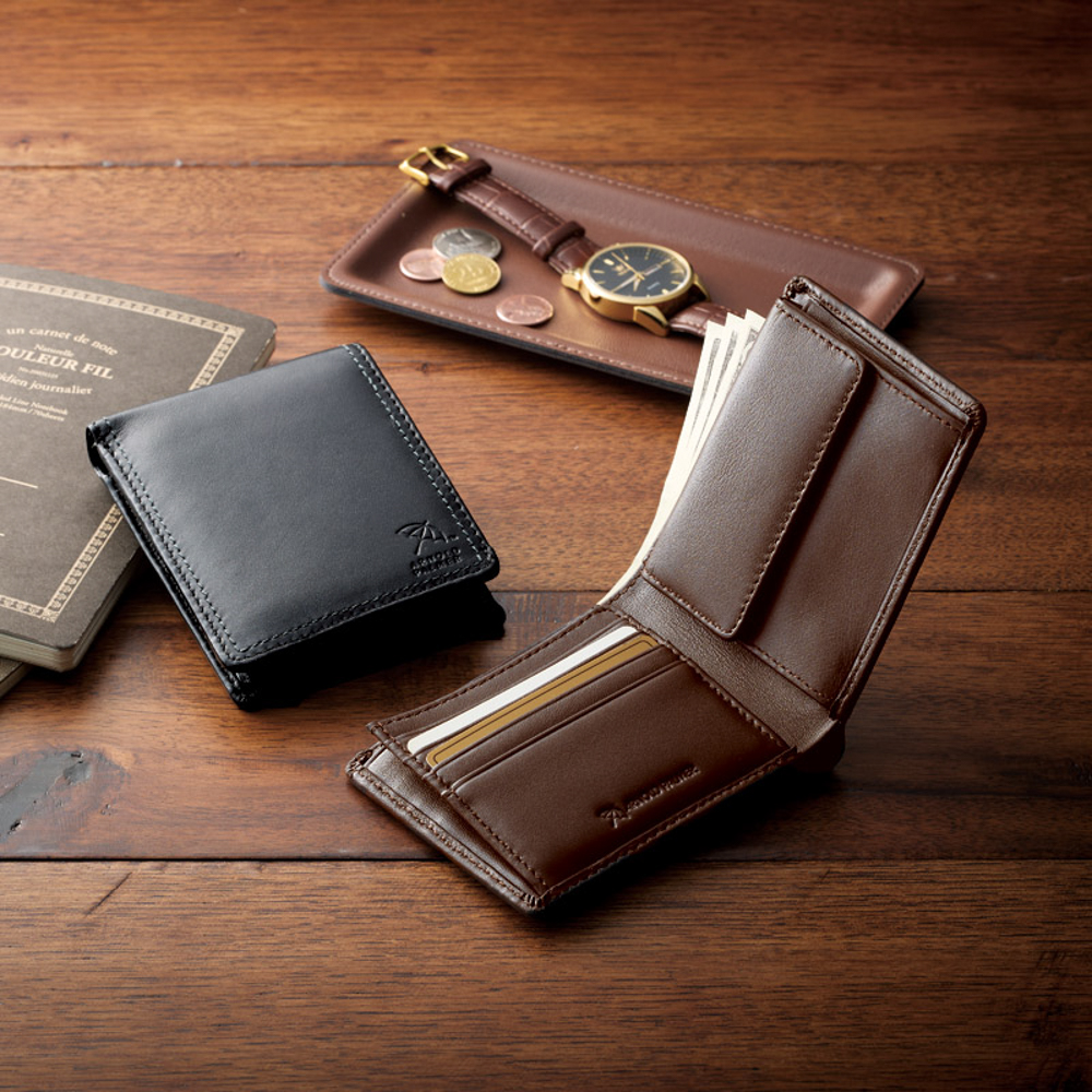 札入×2室、カード入れ×8室、ポケット×3室、ホック開閉式小銭入れ×1室。