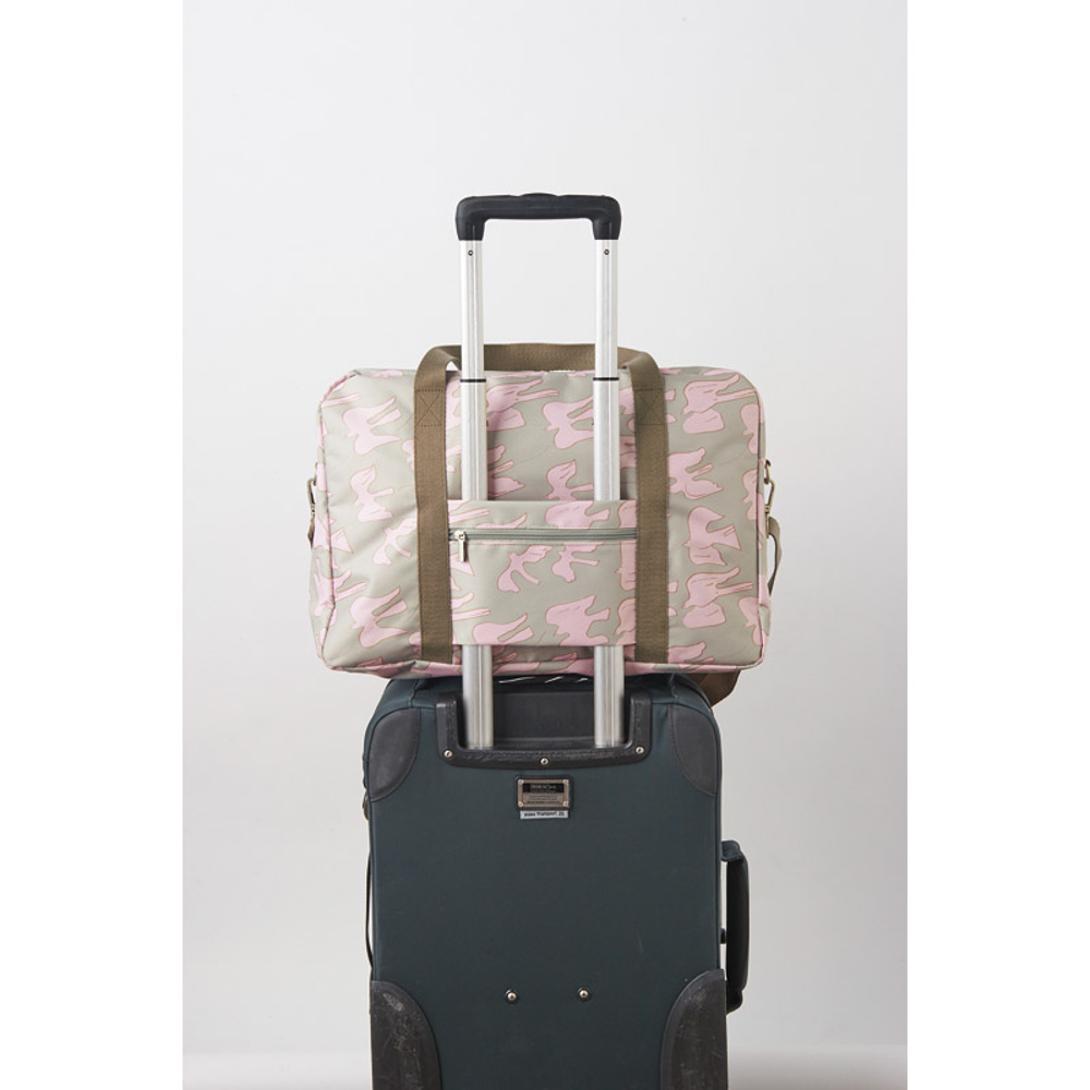 ハンドルを差し込んで装着できるホルダーは、スーツケースやキャリーバッグの上に置いてキャリーオンバッグとしても使えます。