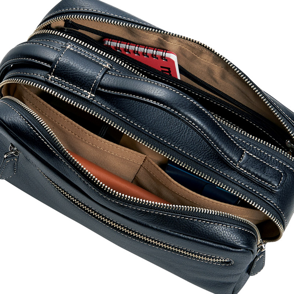 日本の職人さんが一つ一つ丹念に作り上げました。ダブルファスナーなので、収納力抜群。整理もしやすくて便利です。ファスナー開閉式。前ファスナーポケット×1室、内オープンポケット×2室、ファスナーポケット×1室。