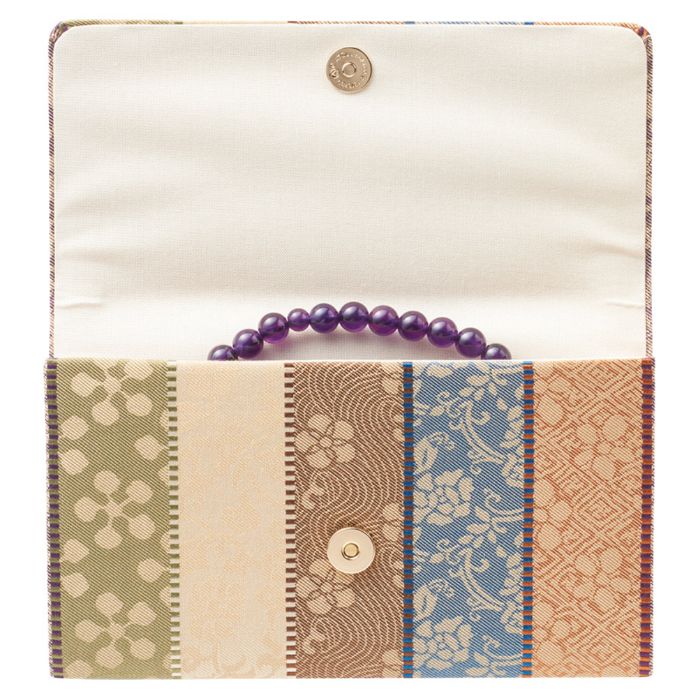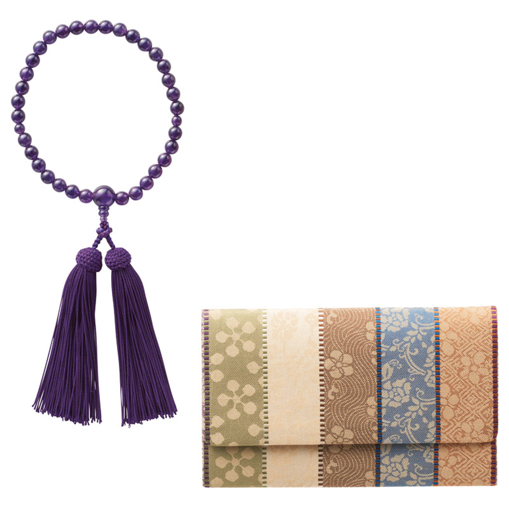 | 内容量 | 念珠(内周約24.5cm)・念珠袋(9.7×15.7cm)×各1・念珠:紫水晶・正絹房、念珠袋:(表)絹・(裏)綿・マグネット |