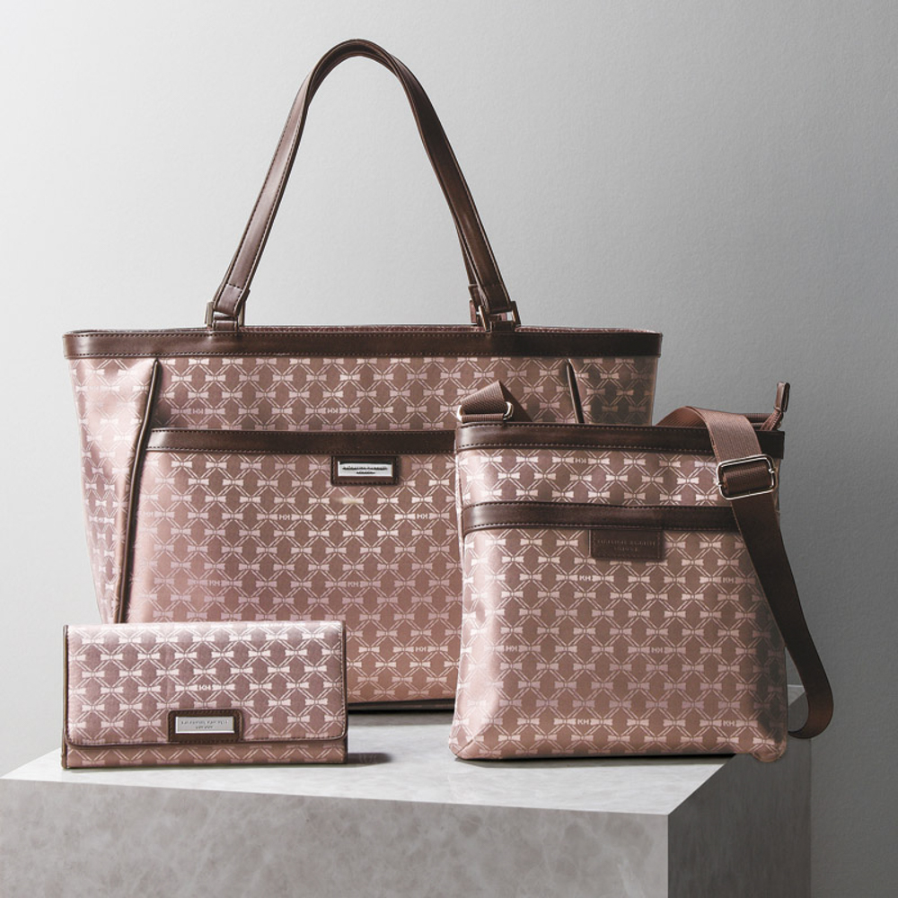 内容量 トートバッグ(27.5×45×11.5cm)・束入れ(9.5×19×3cm)・ショルダーバッグ(23.5×24×5cm)×各1・トートバッグ・ショルダーバッグ:ポリエステル(ジャカード織)・合成皮革、束入れ:ポリエステル(ジャカード織)・牛革