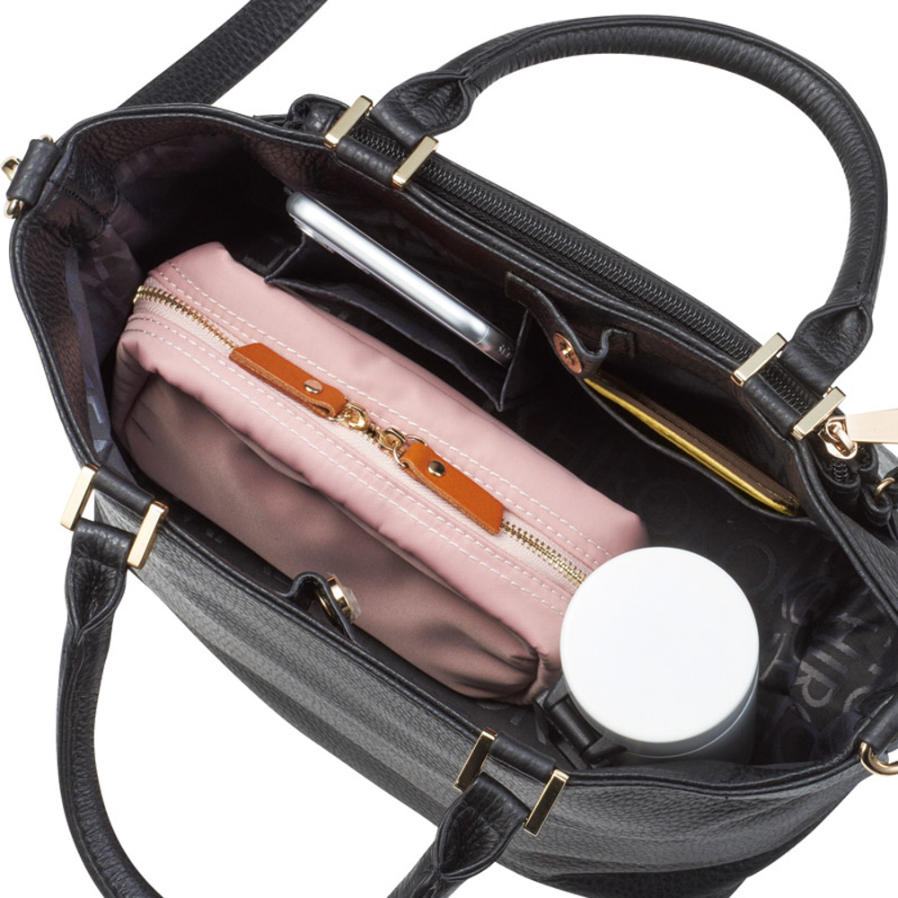 前面マグネットホック開閉ポケット・内ファスナーポケット×各1室、内オープンポケット×2室。
