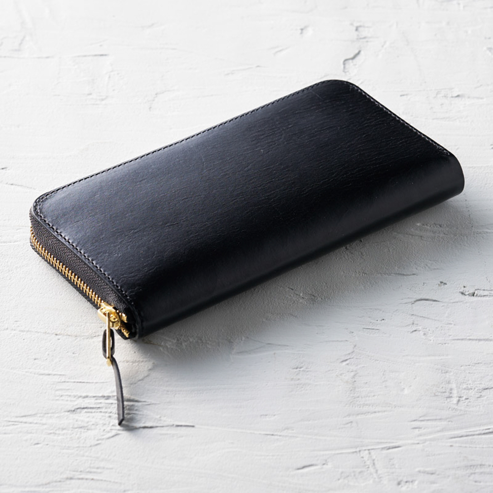手塗りオイルレザー ラウンド長財布(ブラック)