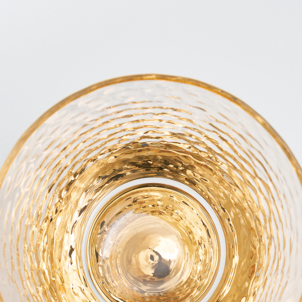 光を受けてキラキラと輝く美しいグラスに煌びやかな金色が反射して多彩な表情を見せます。