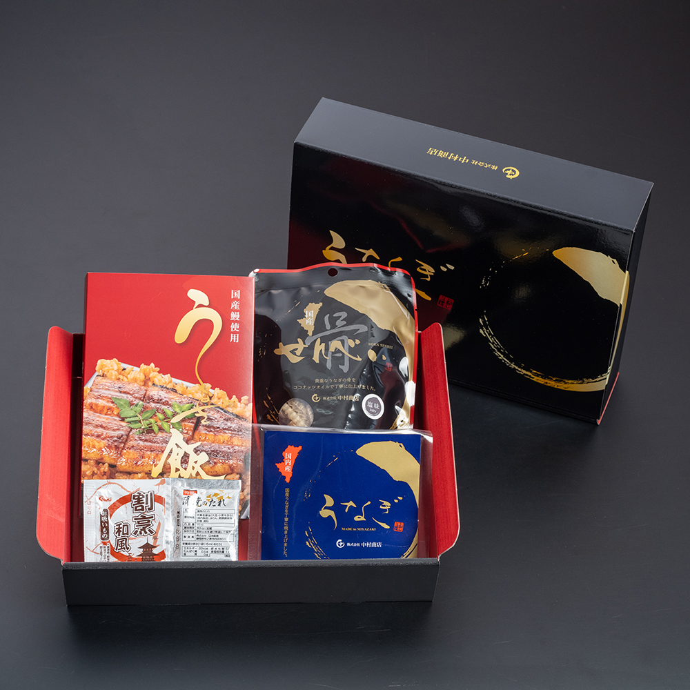 | 内容量 | うなぎ飯(320g)×1個 肝焼き(30g)×1袋 骨せんべい(30g)塩味1袋 たれ×1袋 お吸物×1袋 |