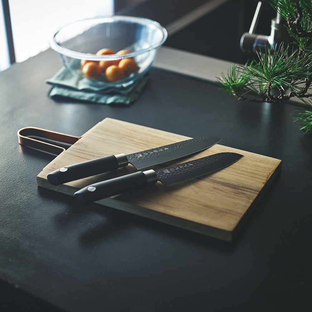 三徳包丁(刃渡17cm)・小三徳包丁(刃渡14.5cm)×各1・モリブデンステンレス刃物鋼、柄:ポリプロピレン