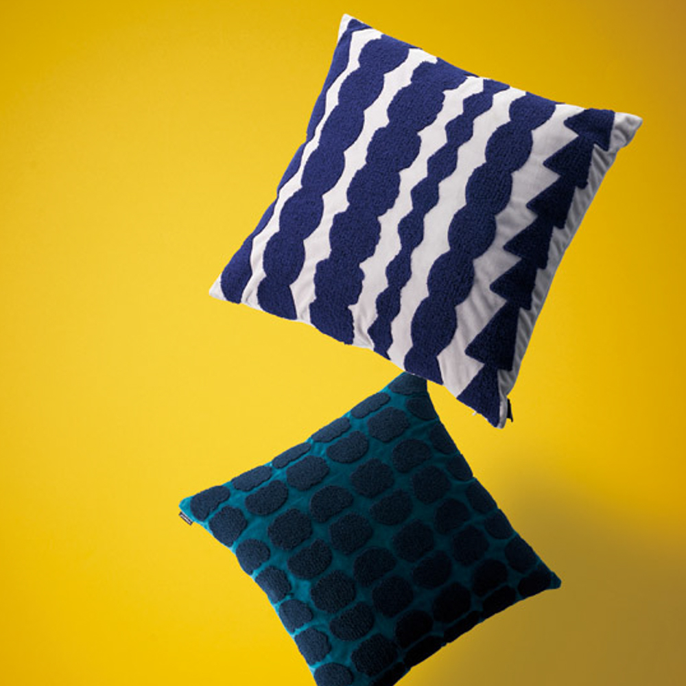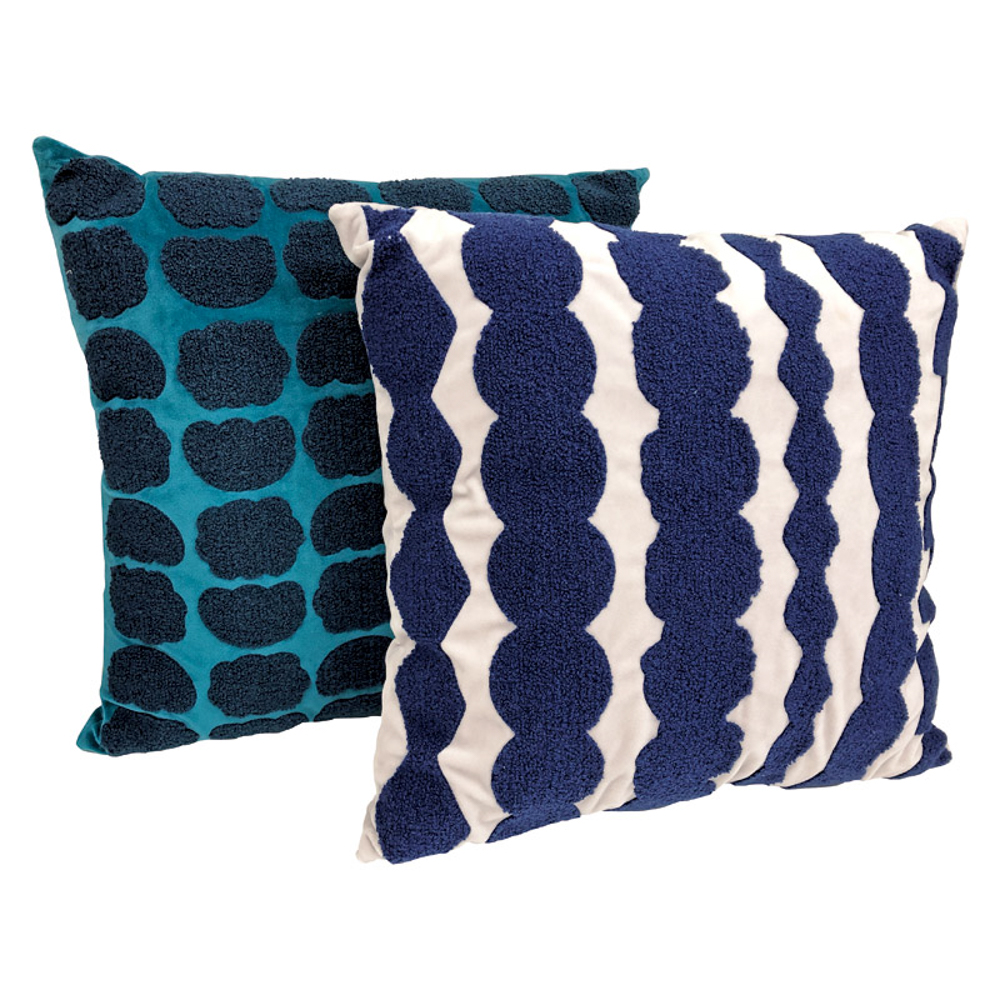 モコモコとした質感のサガラ刺繍を施したペアクッション。
