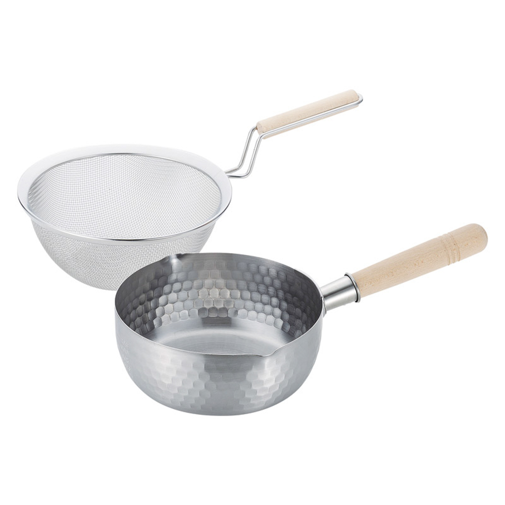 IH対応ステンレス雪平鍋&木柄ザルセット