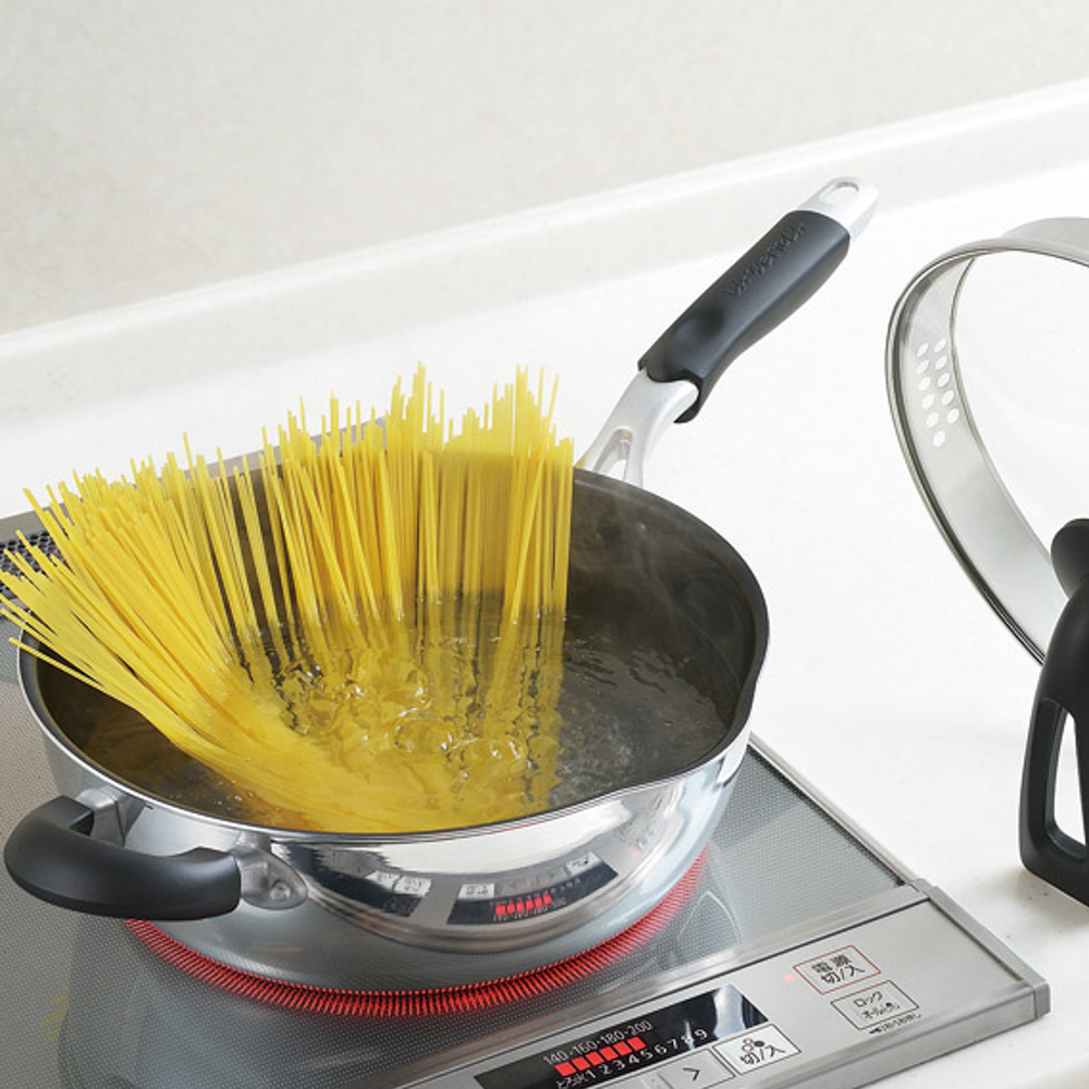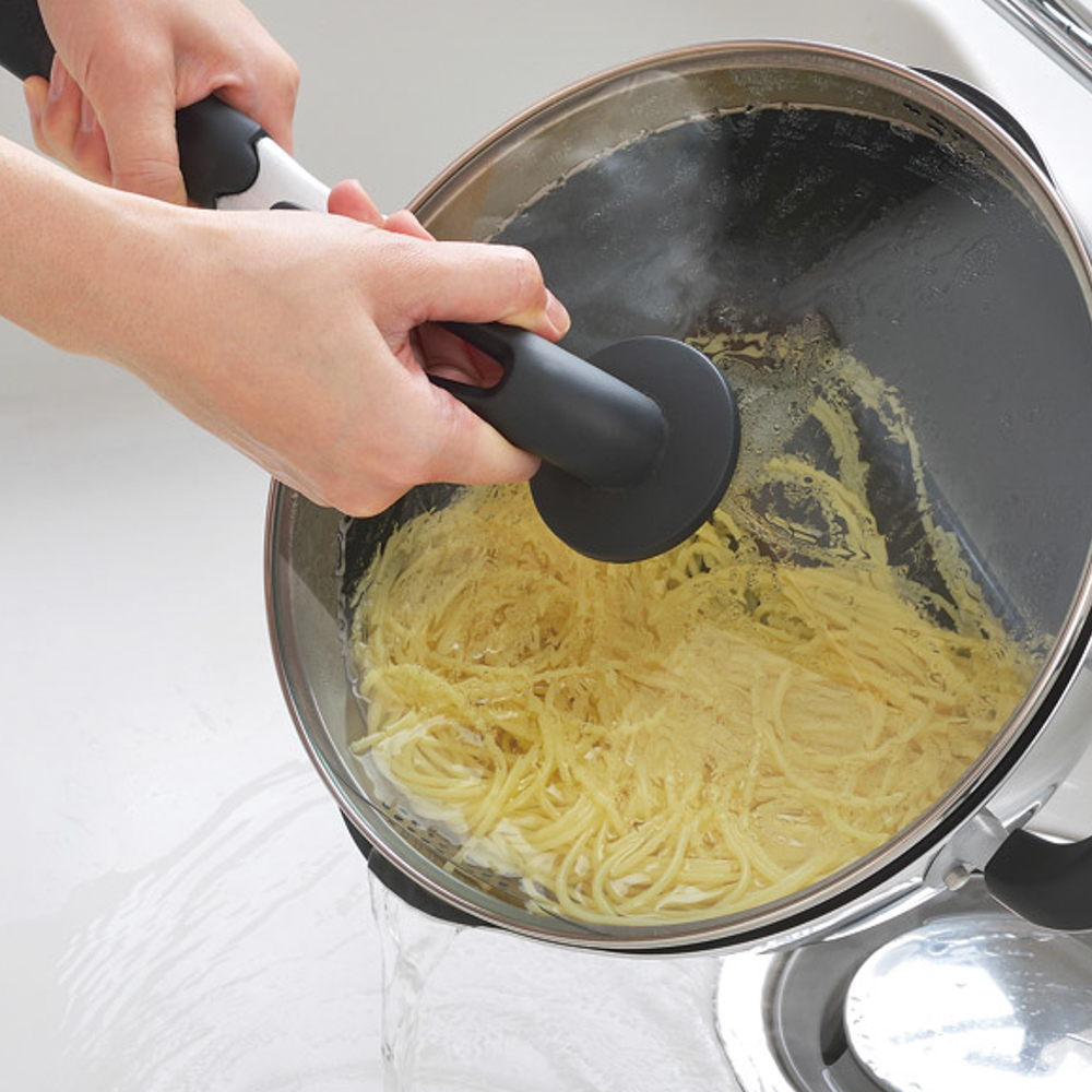 湯切り穴付のため、蓋をしたまま湯切りができます。