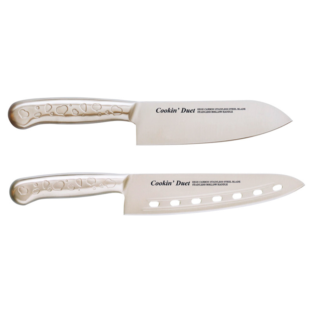 三徳包丁(刃渡17cm)・穴明包丁(刃渡18cm)×各1・モリブデンステンレス刃物鋼、柄:ステンレススチール