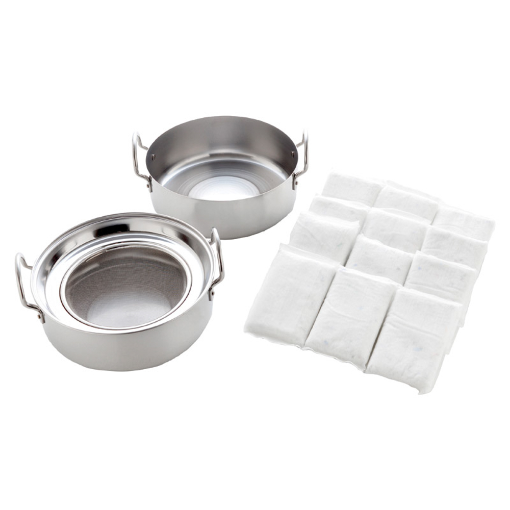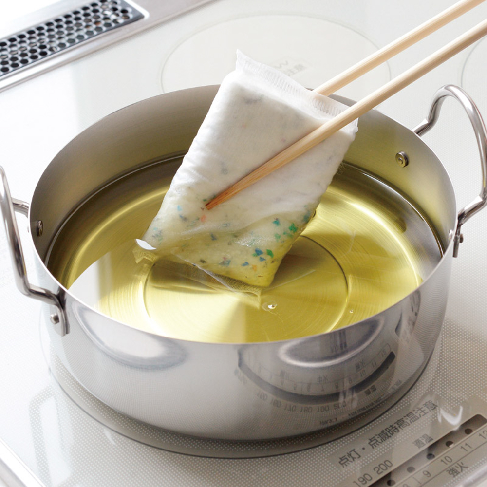 | 内容量 | 鍋(24×20×10.5cm)×2、枠皿(径20.5×2.5cm)・網皿(径15×1.5cm)×各1、油取りパック(13×8×2cm)×12・油ターン:ステンレス鋼、油取りパック:牛乳パック(上質パルプ・ポリエチレン)、不織布 |