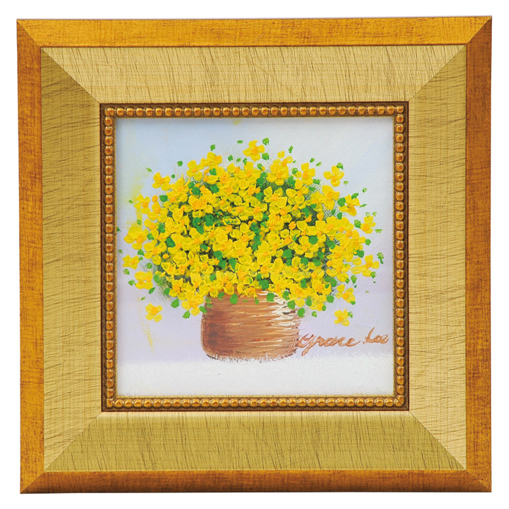 風水にちなんだ手描きの黄色のブーケの油絵です。