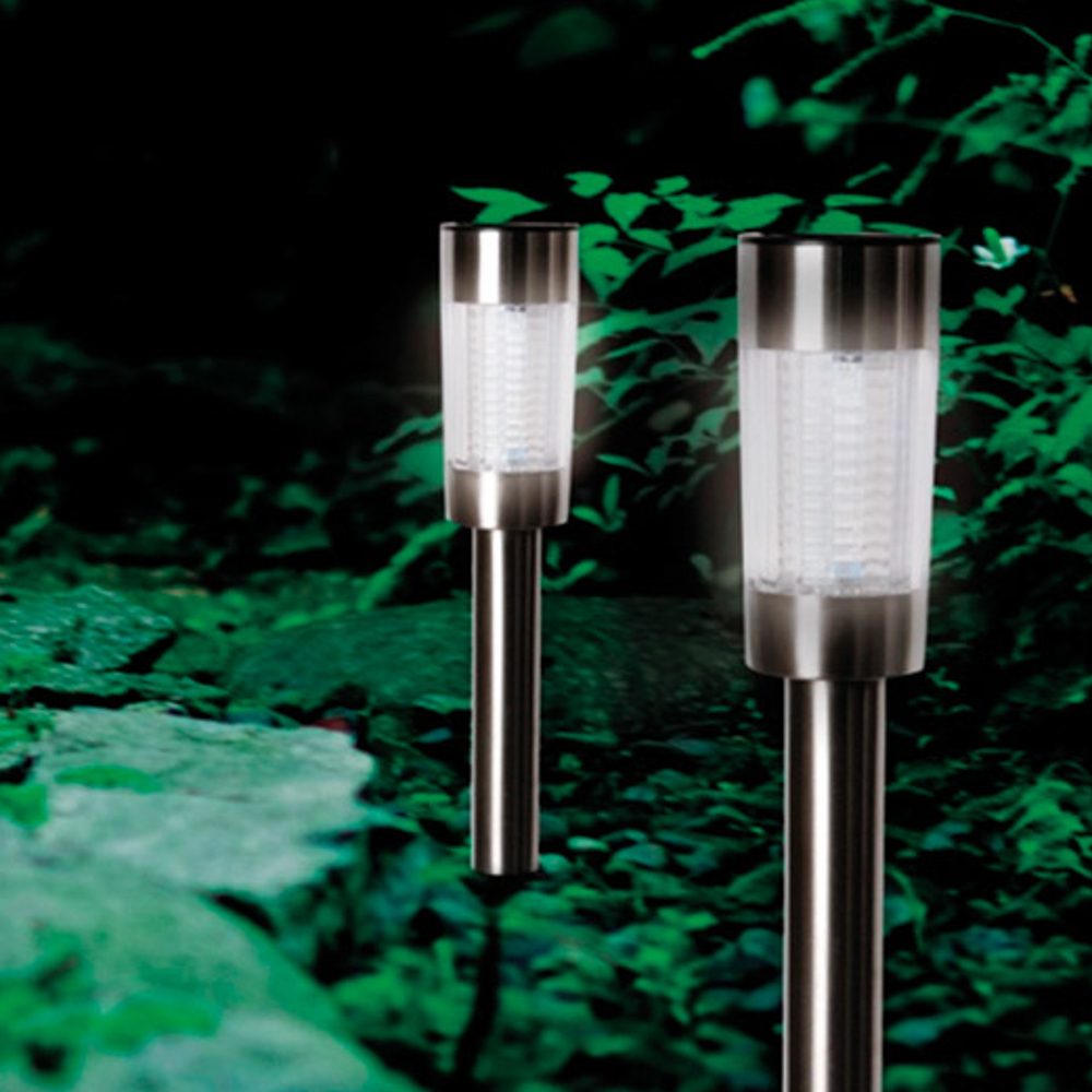 ステンレス製のデザインで、玄関やお庭を明るく照らします。