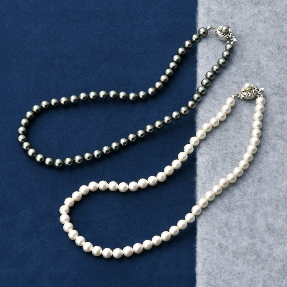 花珠真珠カラーを再現したネックレスの2本セットです。