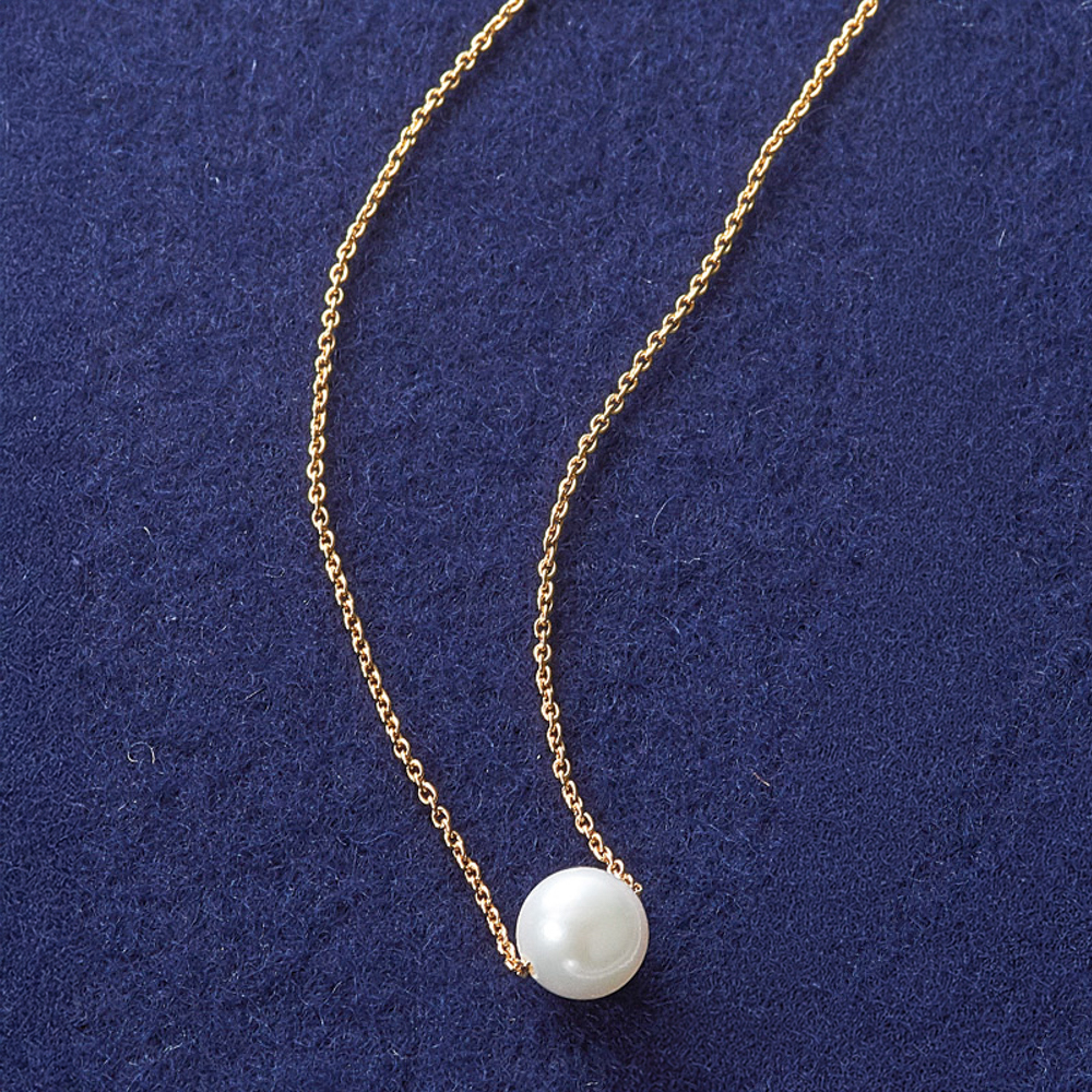真珠の中央にチェーンを通したシンプルでスタイリッシュなデザイン。