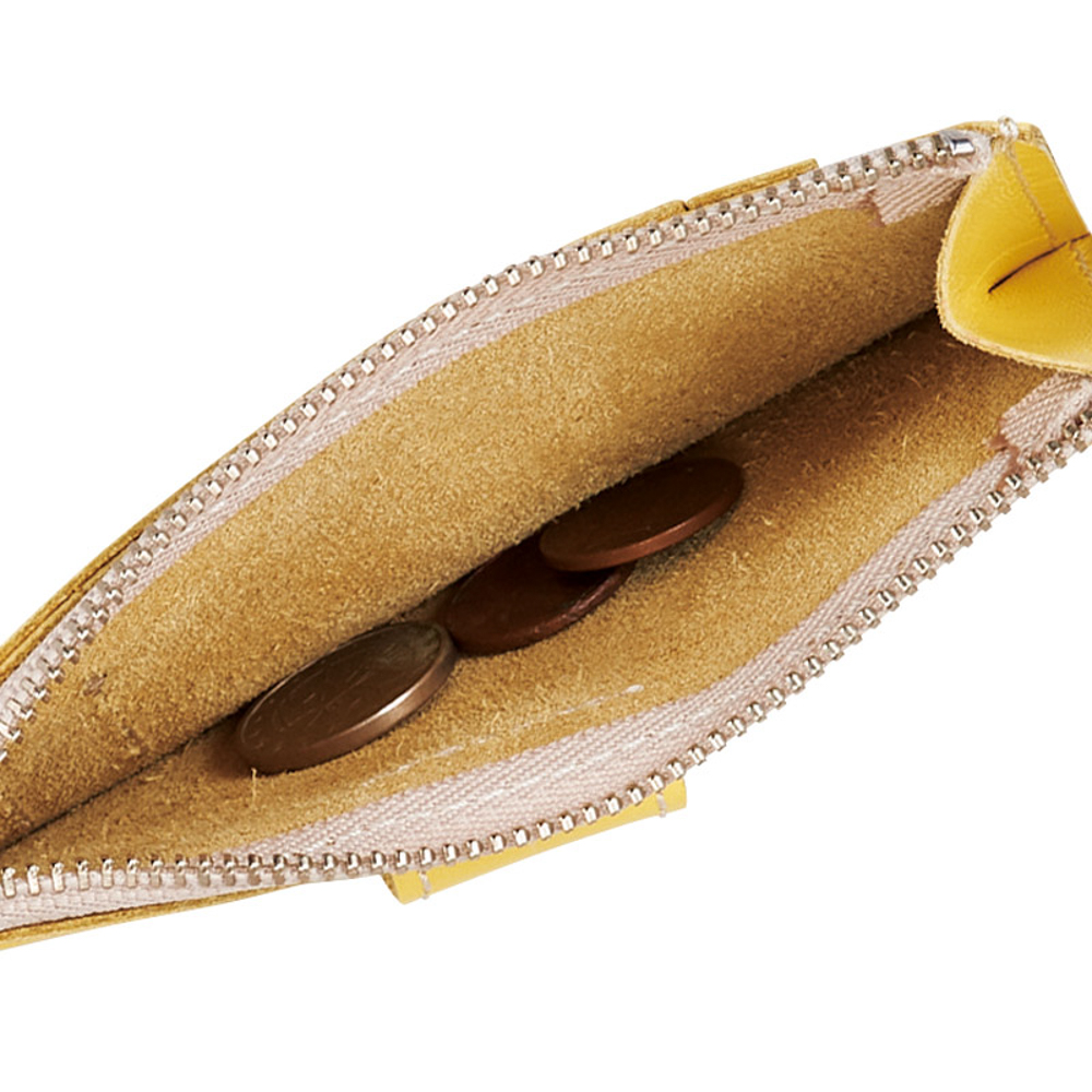 カードケースにポケットとちょっとした小銭入がついているのでこれからのキャッシュレス生活に活躍します。ファスナー小銭入・前ホック付ポケット×各1室、背カード入×4室。