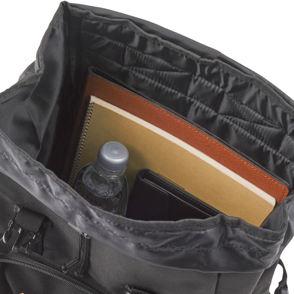 ざっくりと収納できる大き目リュックサック。カブセ巾着式のメイン開閉の他に、背面ファスナー取り出し口でスマートに物の出し入れができます。カブセ巾着開閉式。外オープンポケット×2室、ファスナーポケット×1室。背面取り出し用ファスナー付。
