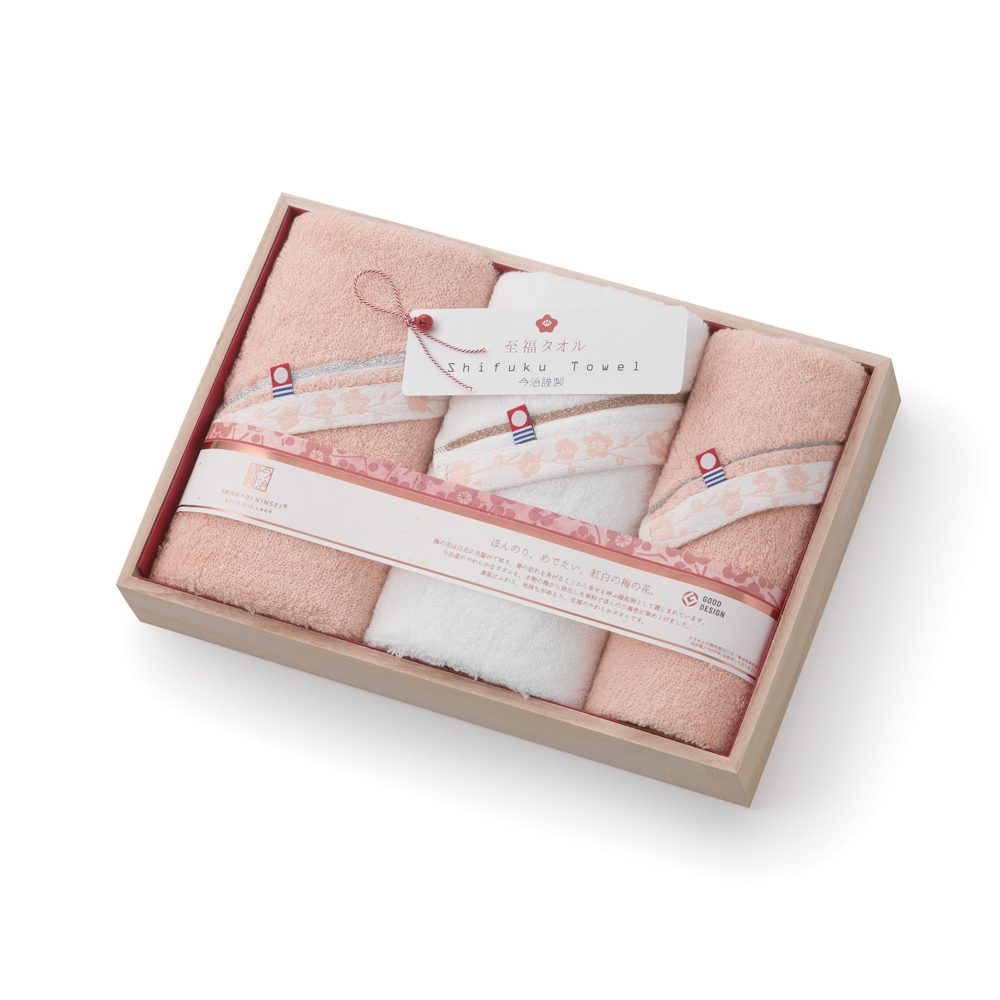 おめでたい紅白の梅の色を今治の上質なタオルにアレンジ