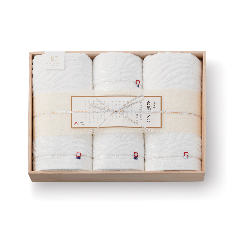 上質感のある木箱に納めた純白のタオルはどのようなシーンでも喜ばれる一品です。