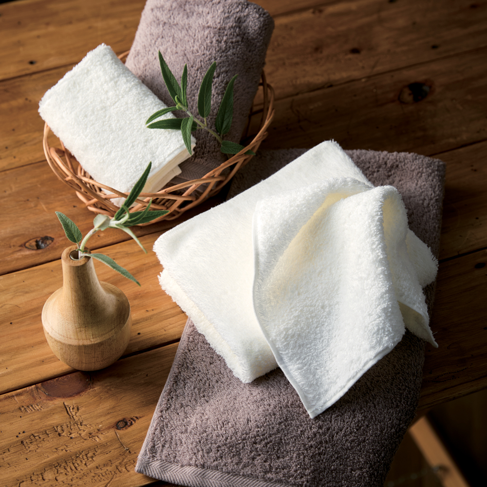 肌触りがやわらかくなめらかなオーガニックコットンタオル国際認証取得オーガニックコットン100%のやわらかな甘撚り糸でふかふかのロングパイルに織り上げた吸水性も肌触りも良い、毎日つかいたくなるやさしいタオルです。