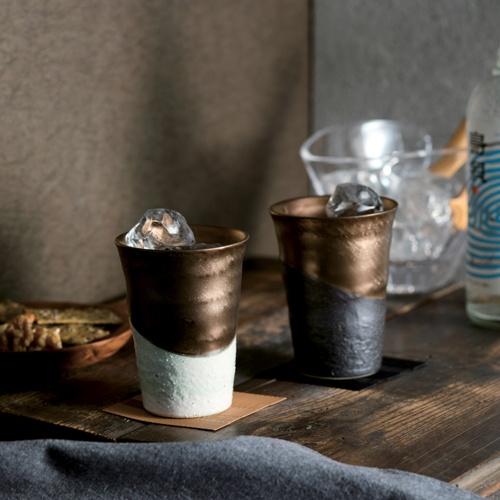 モノトーン調のペアカップにゴールドカラーを施しました。
