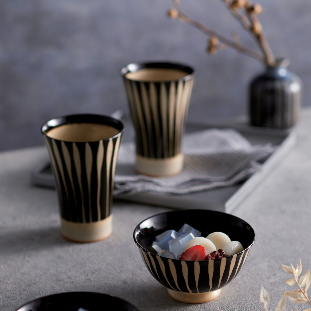 古くから親しまれる縦縞模様をあたたかみのある陶器にアレンジしました