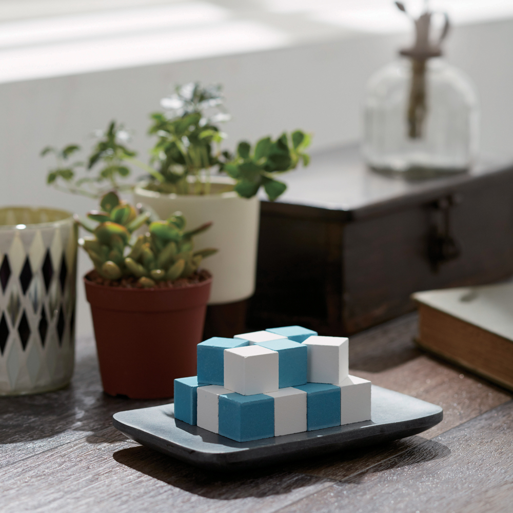 1400年以上の歴史を誇る日本伝統の漆喰自然素材で安全性が高く、安心漆喰でつくった環境にも人にもやさしいエコな消臭キューブ。日本古来の健康建材である「しっくい」の臭い吸収機能と光触媒の分解機能を複合し、太陽の光を当てることで消臭機能が再生するインテリアグッズです。