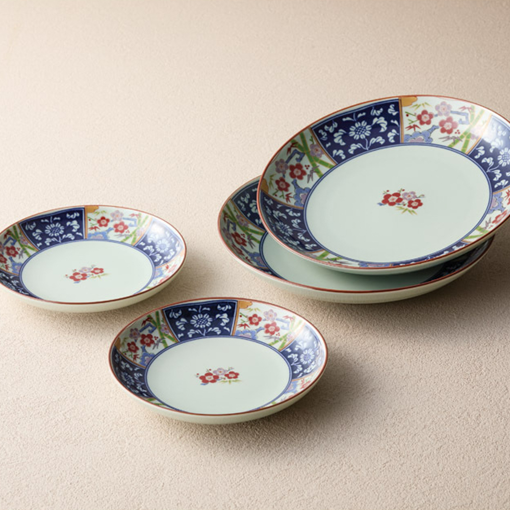 古伊万里色鍋島の伝統美を今風にアレンジした、和食だけでなく洋食にも使える優れもの。