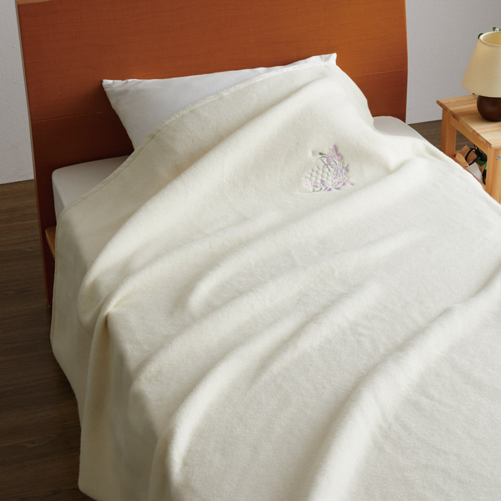 140×190cm・ヨコ糸(毛羽部分)(表)ウール90%・カシミア10%・(裏)綿100%、タテ糸:ポリエステル100%