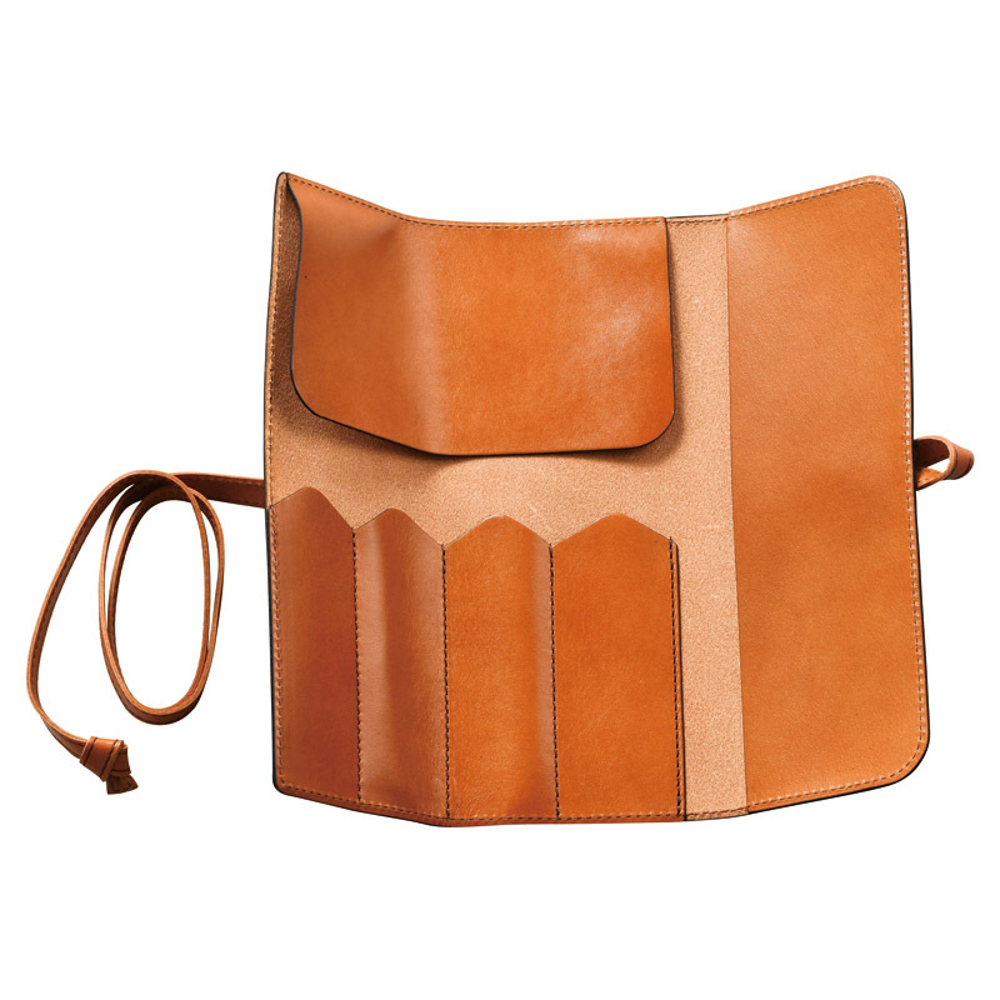 植物タンニンで鞣した後に手作業で丁寧にオイルを塗りこんで仕上げた革を使用したロールタイプのペンケースです。