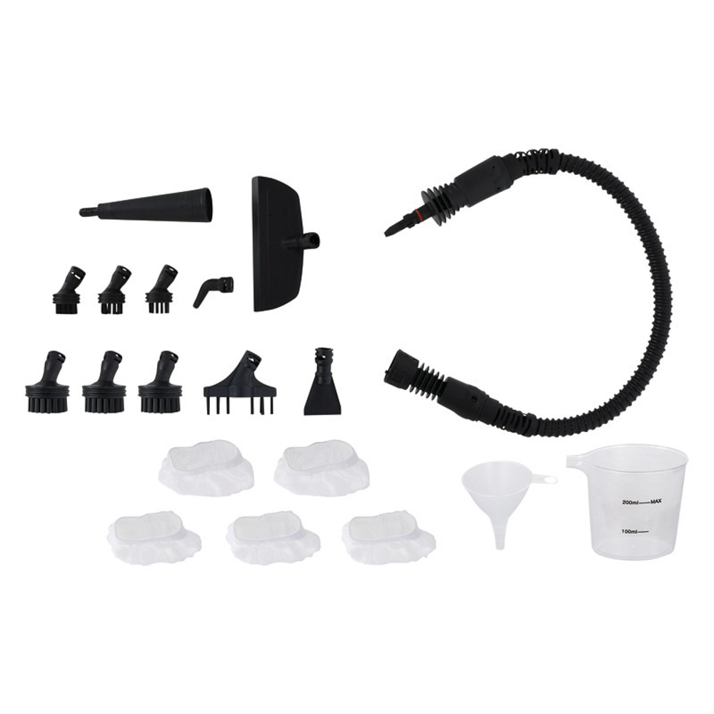 | 内容量 | 本体(11.5×26.5×20.7cm)・サッシ用ブラシ・リトルスクレーパー・ストレートノズル・延長ホース・アングルノズル・窓用アタッチメント・ジョウゴ・メジャーカップ×各1、布カバー×5、ブラシ・ブラシ大×各3・ポリプロピレン |